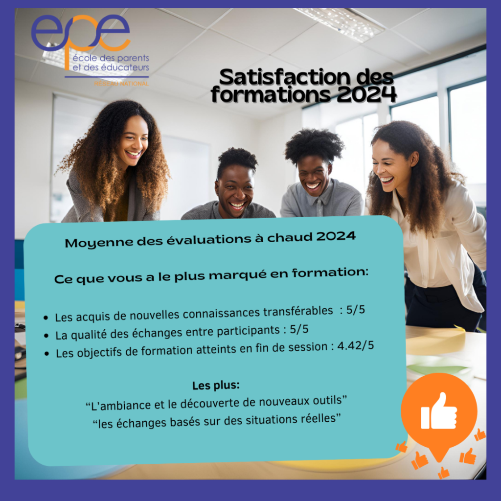 Le réseau des Ecoles des parents et des éducateurs (EPE) est historiquement et intrinsèquement impliqué dans la formation des professionnels intervenant dans l’accompagnement des familles et des parents. La majorité des associations du réseau mène des actions de sensibilisation et de formation auprès des professionnels, dont plus du tiers est organisme de formation certifié Qualiopi.