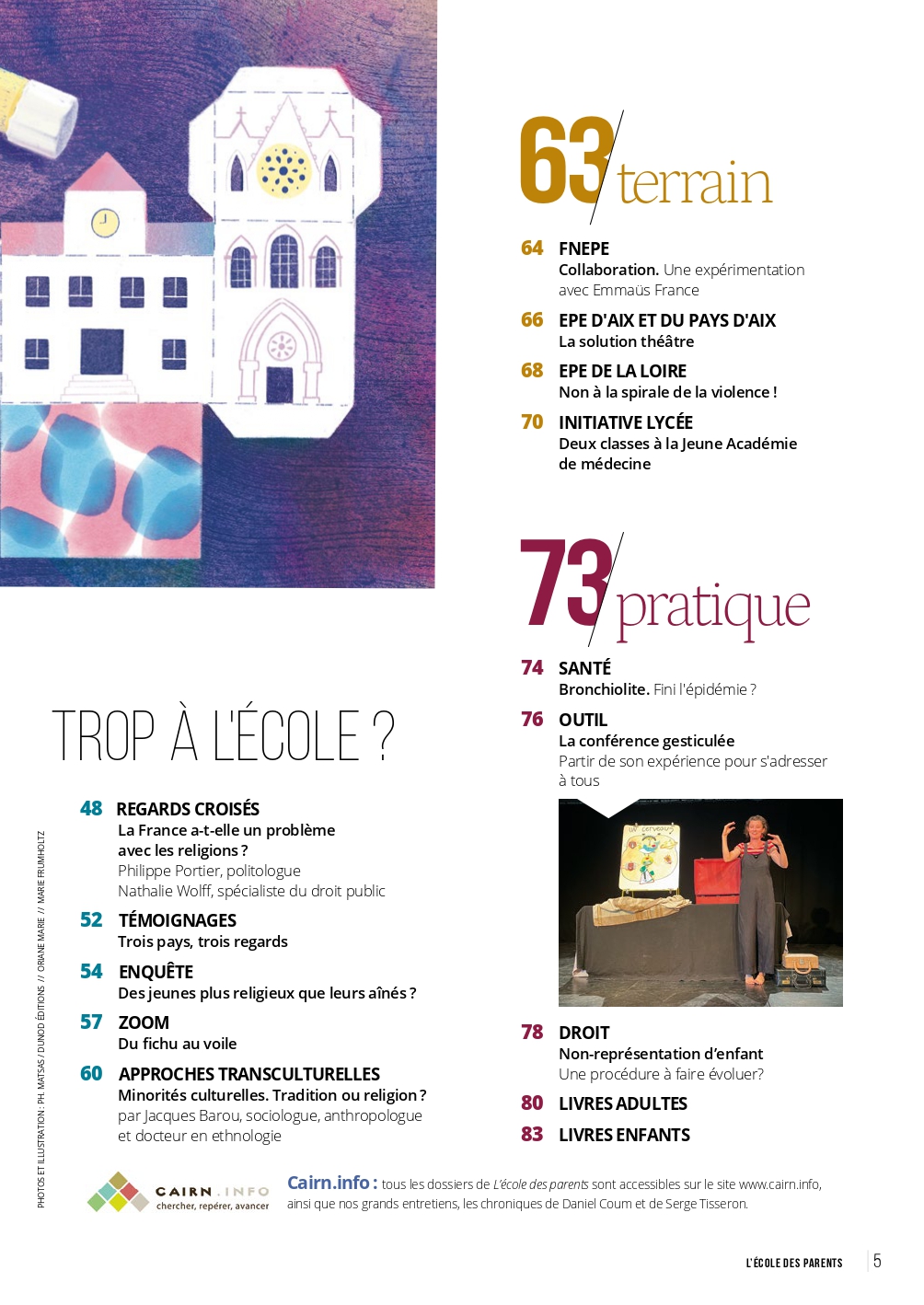 Depuis un siècle et demi, l’école républicaine est considérée comme un espace où chacun peut apprendre, penser et grandir à l’abri des pressions idéologiques. C’est sur le cadre scolaire que sont intervenus les premiers textes proscrivant le prosélytisme religieux, dès les années 1880, avant même la loi de 1905 établissant la séparation des Églises et de l’État. Face au constat d’un retour du fait religieux, une loi, en 2004, vient interdire le port de signes religieux ostensibles dans les établissements publics. Mais la question n’en finit pas de faire débat. Comment est-on passé d’un principe garantissant la liberté de penser à une injonction qui met l’accent sur les restrictions, au risque de devenir, selon certains, un outil d’exclusion ? Avec quels moyens les enseignants s’emparent-ils du sujet avec leurs élèves ? Les atteintes à la laïcité sont-elles vraiment de plus en plus fréquentes ? Cent vingt ans après la loi de 1905, ce dossier revient sur le concept, ses objectifs, son évolution, et interroge la place de la religion dans notre société.